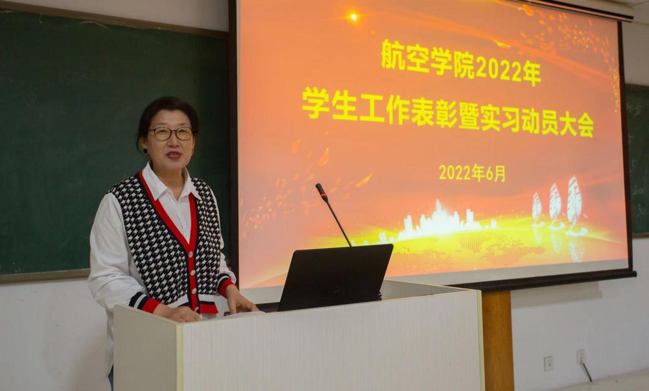 院长马云芹在最后总结讲话中,简单回顾了一年来航空学院学生管理工作,对2020级全体同学所取得的成绩和全体辅导员、班主任以及广大教师的辛勤付出给予了充分肯定,对即将走上实习岗位的同学们,分别就端正态度、转变角色、勤奋敬业、遵规守纪、学习提高等诸方面提出了殷切期望。鼓励同学们百尺竿头更进一步。